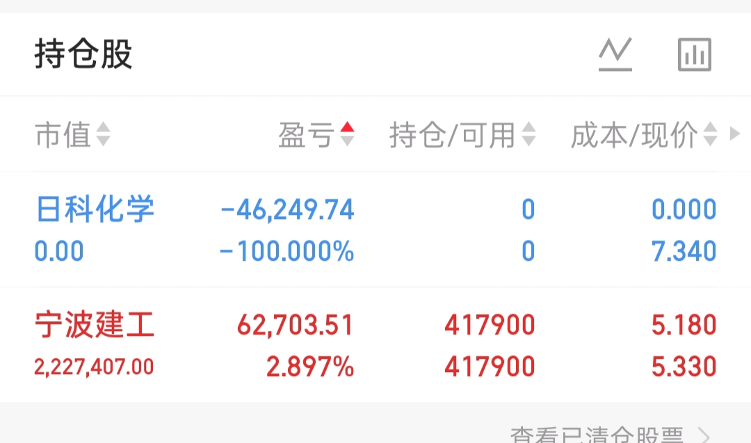$宁波建工(SH601789)$ 不断加仓做t,终于盈利了,日科化学止损了,还有90万仓位准备低于5.18继续补,在此承诺不到7.7一股不卖