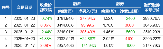 星宇股份:连续3日融资净买入累计859.42万元(01-23)