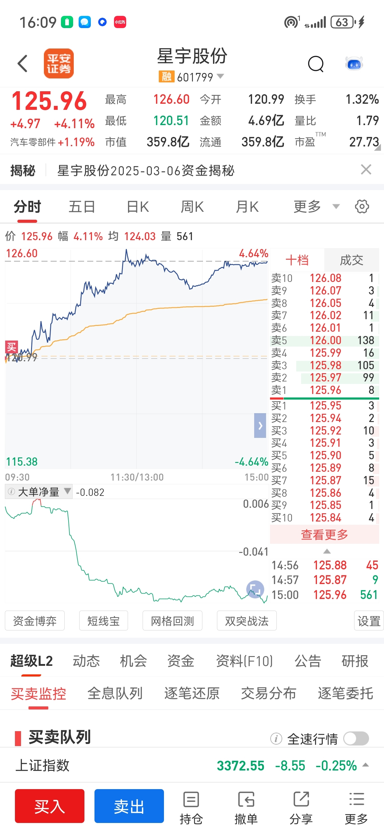 $星宇股份(SH601799)$ 今天开盘买入,明天开盘卖出,跌了我在回来。