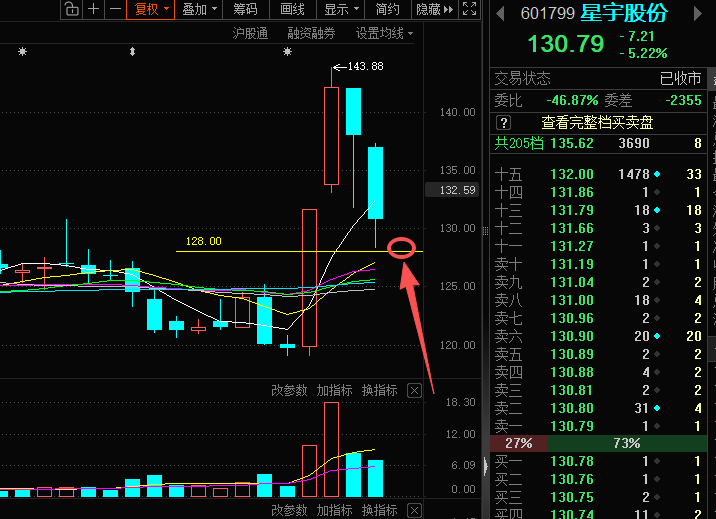 推演:明天短线回踩锚定128.0左右!