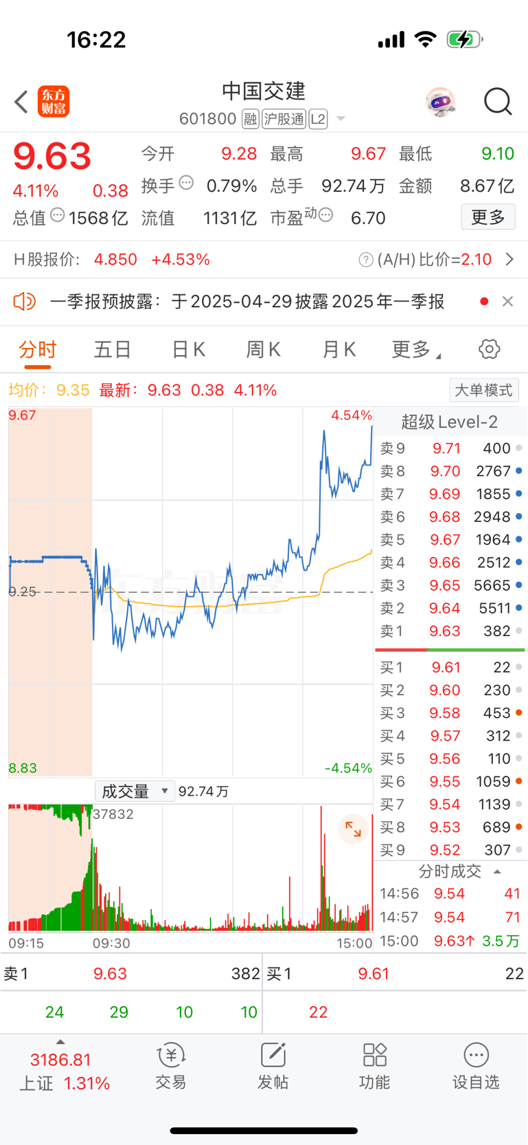 $中国交建(SH601800)$ 尾盘国家队直拉一个点