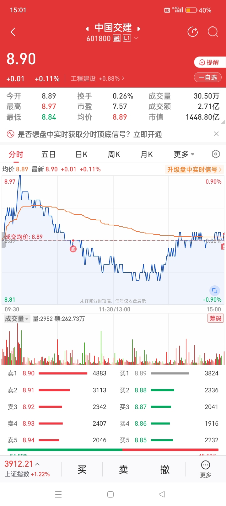 尾盘8.9元买入中国交建。