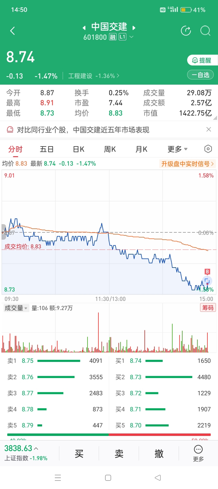 $中国交建(SH601800)$ 8.74元加仓中国交建。