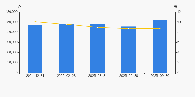 2024年12月31日至今,公司股东户数有所增长,区间涨幅为9.92%。2024年12月31日至2025年9月30日区间股价下降13.55%。