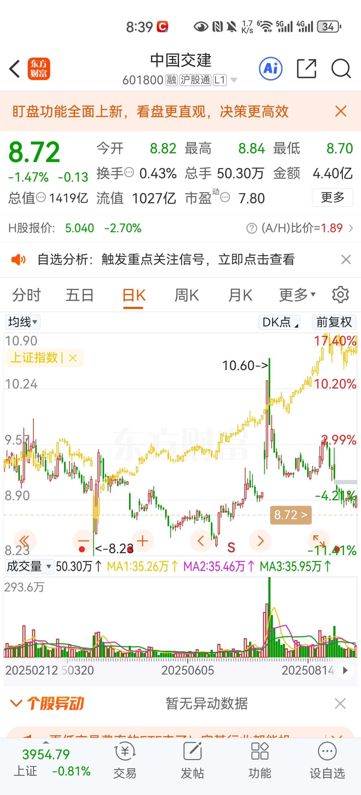 $中国交建(SH601800)$ 中国交建跟上证指数对比