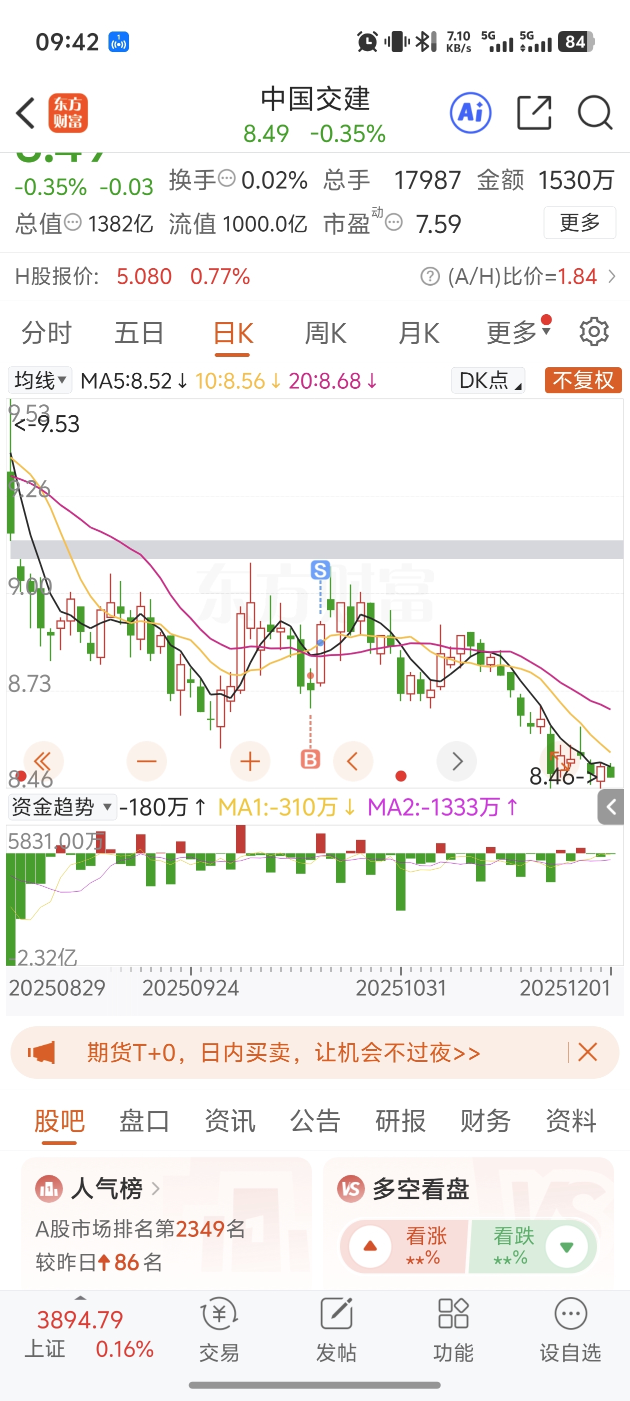 $中国交建(SH601800)$ 到现在没敢动,等着上升趋势,没有上升趋势不敢买
