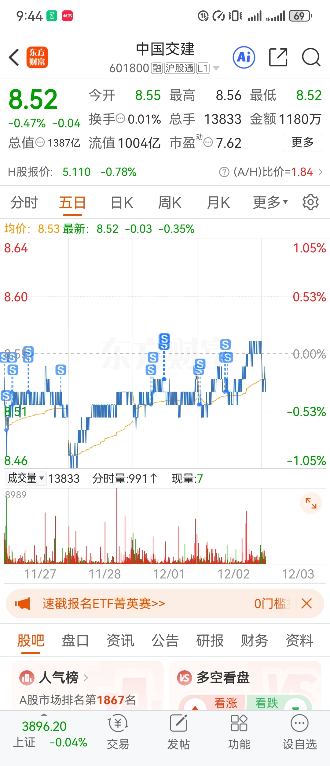 $中国交建(SH601800)$ 看来今天我还得继续卖啊