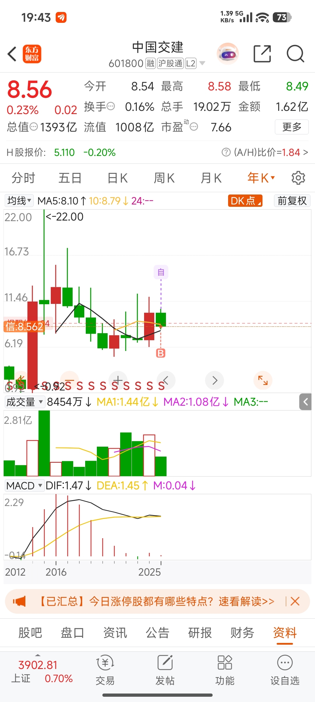 $中国交建(SH601800)$ 今年也就这样了,赌一把明年这些个能憋股应该会有所表现吧!看股息率应该买中铁,但是交建波动更大一些,买个拿长线看看是不是真的长期持股=价值投资,看看是不是真的让股民赚到马尼