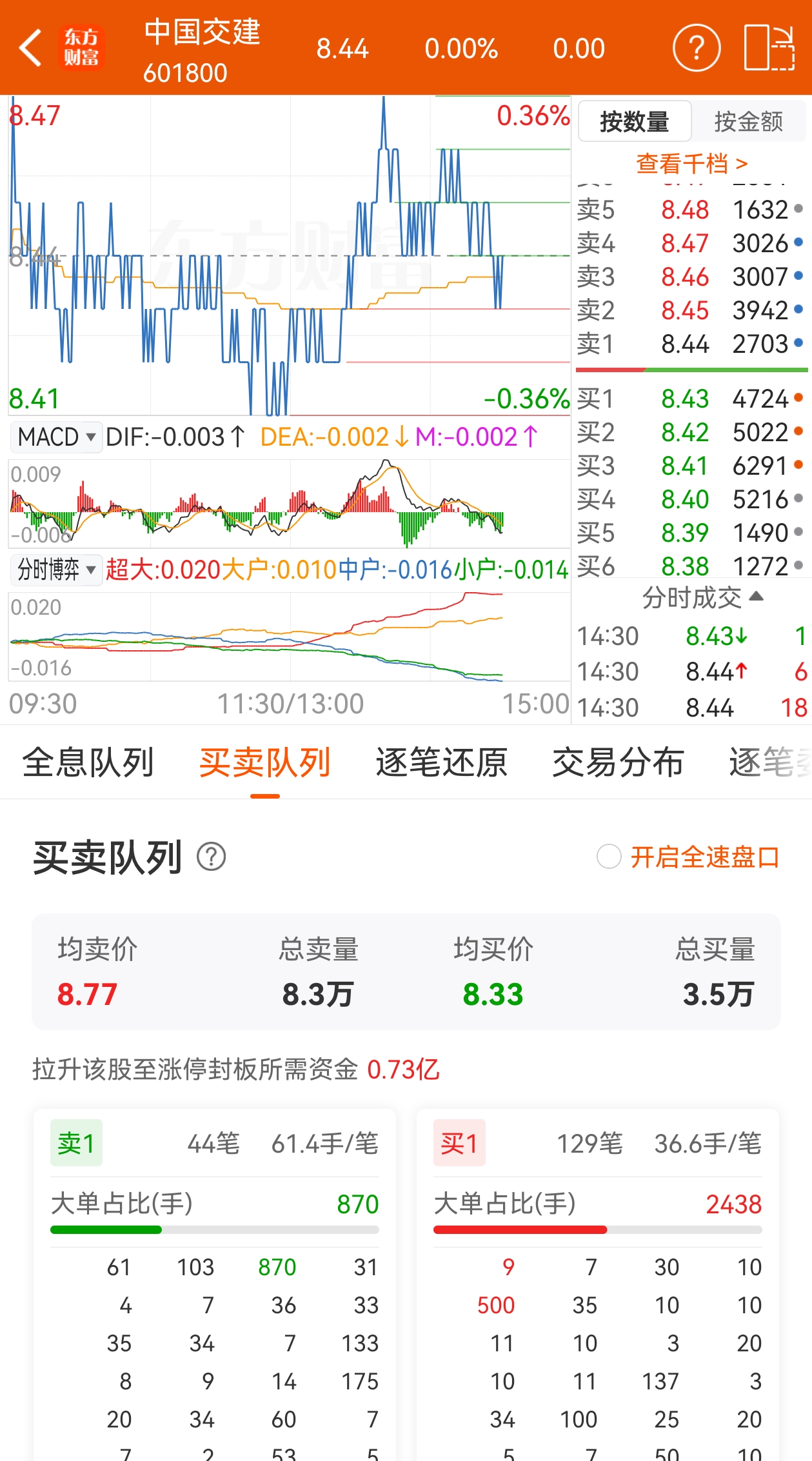 $中国交建(SH601800)$ 大家众筹一下7300万拉涨停,把主力洗出去拉倒。让他不当人。