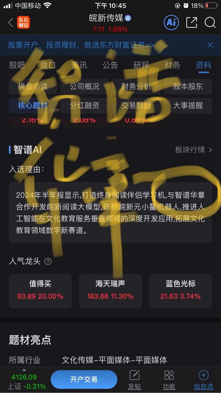 $皖新传媒(SH601801)$ 智谱华章港股三天翻倍,皖新传媒,华胜天成,与智谱是战略合作伙伴!华胜天成被陈小群狂买,我更看好皖新传媒!