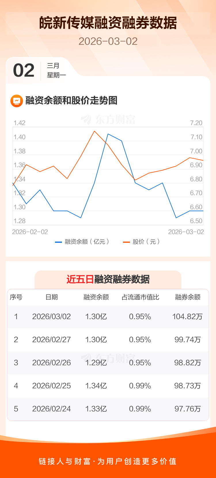 交易所最新数据显示,皖新传媒于2026年3月2日获融资买入1424.72万元,融资偿还1495.04万元,当日融资净偿还70.32万元。目前,该股融资余额1.30亿,占流通市值比例为0.95%。