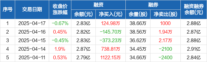中海油服:融资净买入124.98万元,融资余额2.83亿元(04-17)