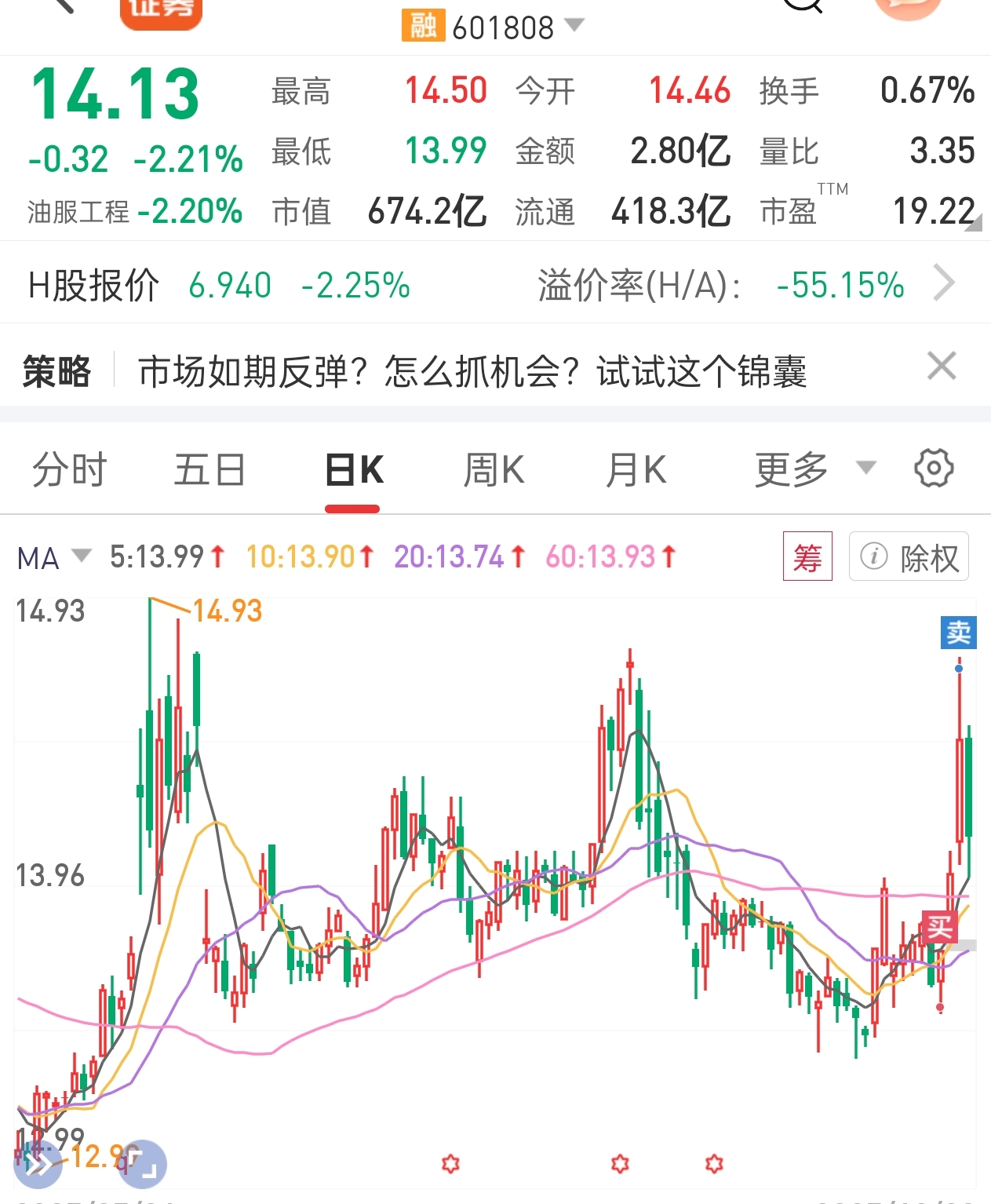 $中海油服(SH601808)$ 自动挂单,石化油服卖飞了,这个居然卖在高点