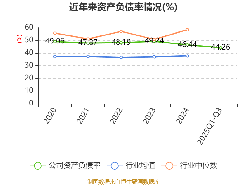 2025年前三季度,公司流动比率为1.05,速动比率为0.95。