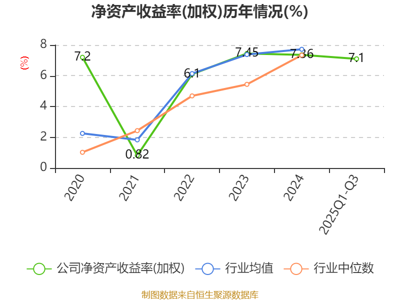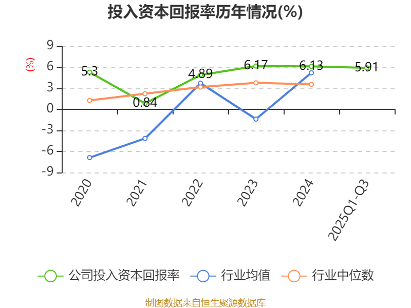 盈利能力方面, 2025年前三季度公司加权平均净资产收益率为7.1%,同比上升1.3个百分点。公司2025年前三季度投入资本回报率为5.91%,较上年同期上升1.13个百分点。