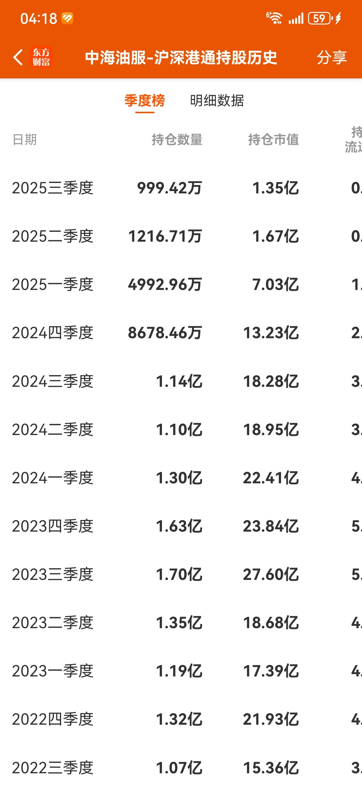 $中海油服(SH601808)$ 前边外资持有1.7亿股现在还剩下多少?谁操盘?1.7亿股占流通股比例是多少?牛市一年多都不涨还跌,说明没主流资金进来。说明没有资金操盘。有资金操盘大盘4000点不涨?石油股买了就后悔,唉!