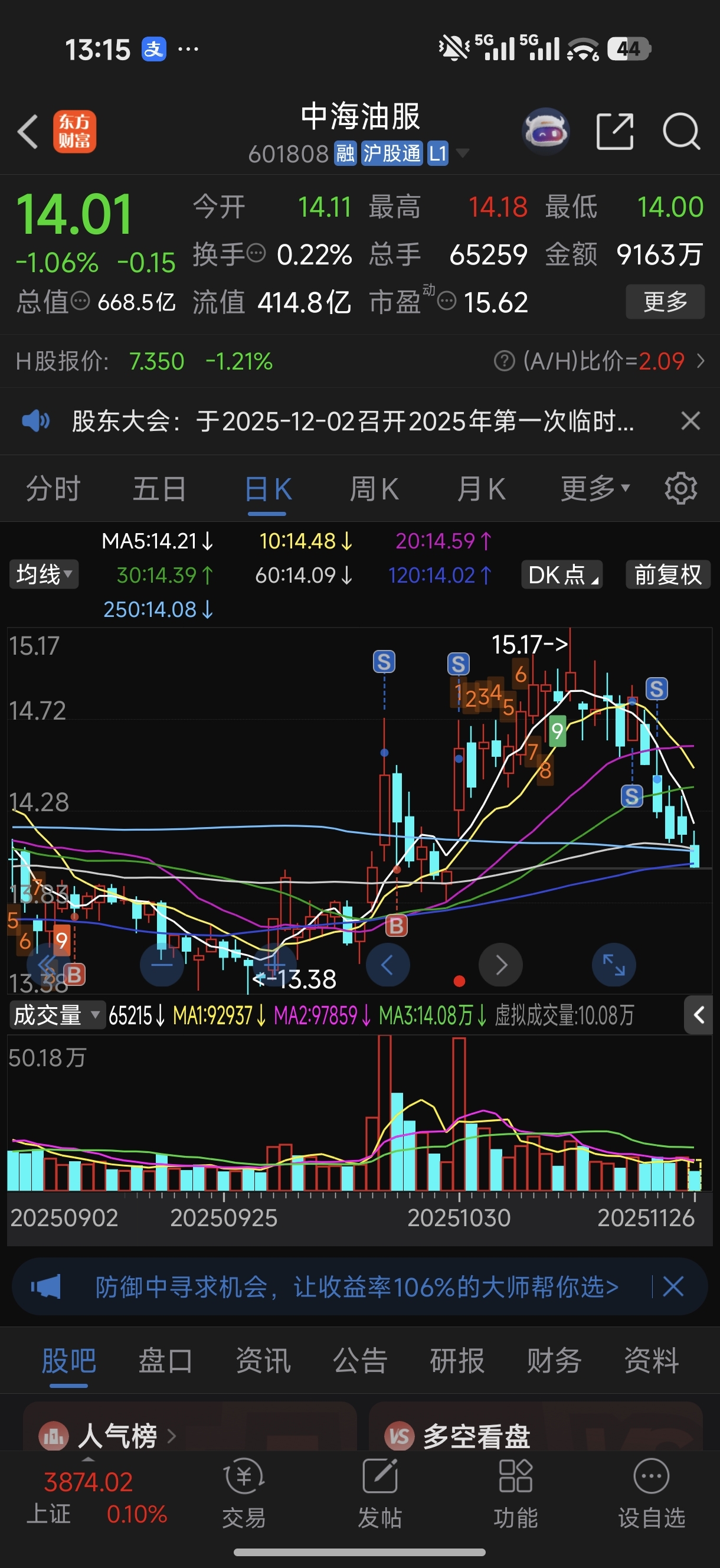 $中海油服(SH601808)$ 卖的很正确,14以下再买点