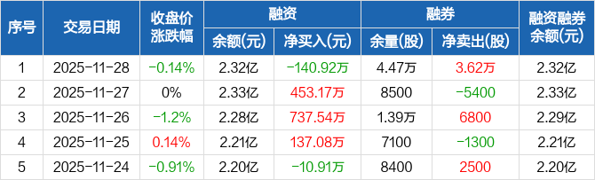 中海油服:融资净偿还140.92万元,融资余额2.32亿元(11-28)