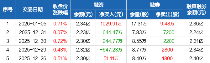 中海油服:融资净买入1029.91万元,融资余额2.34亿元(01-05)