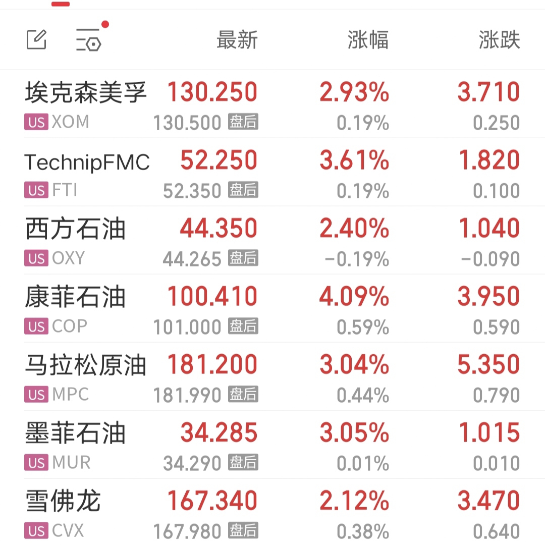 美股油气开采,油气装备股逆势上涨