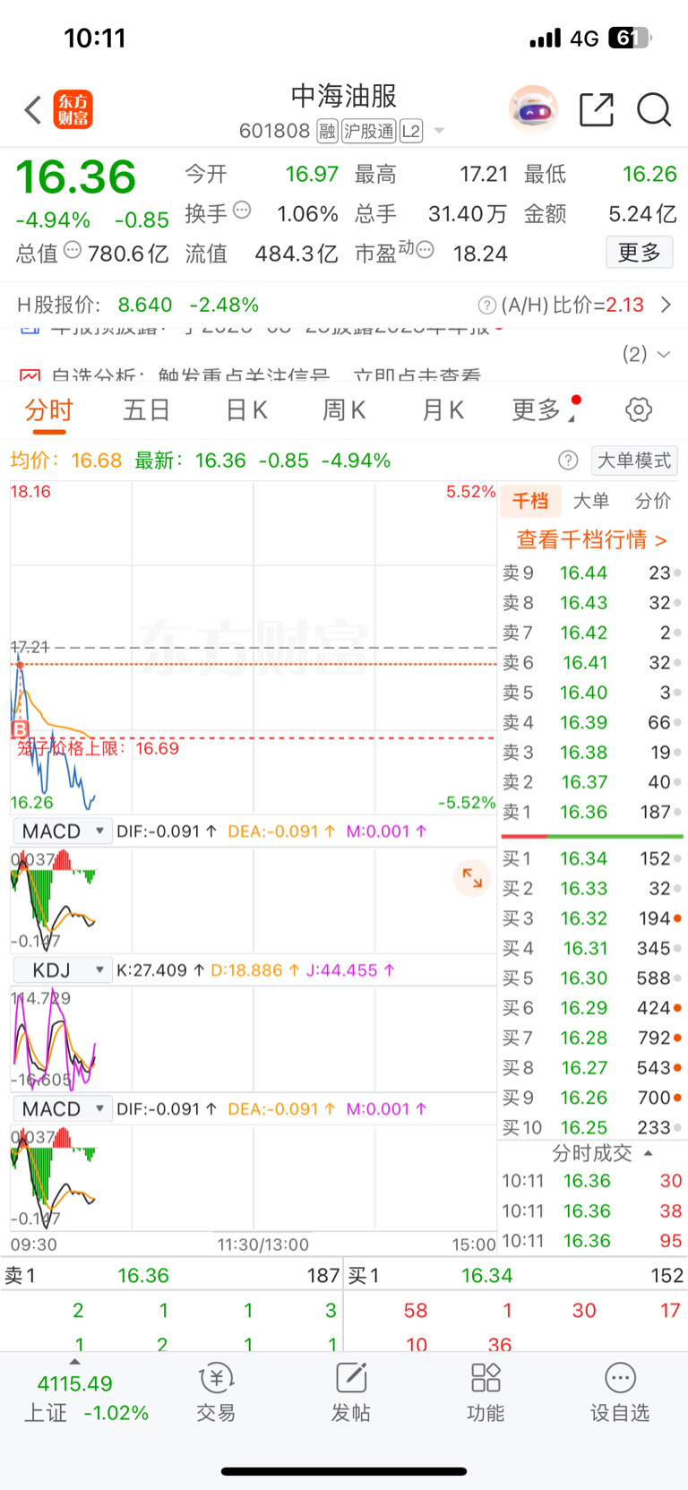 $中海油服(SH601808)$ 被我买崩盘了