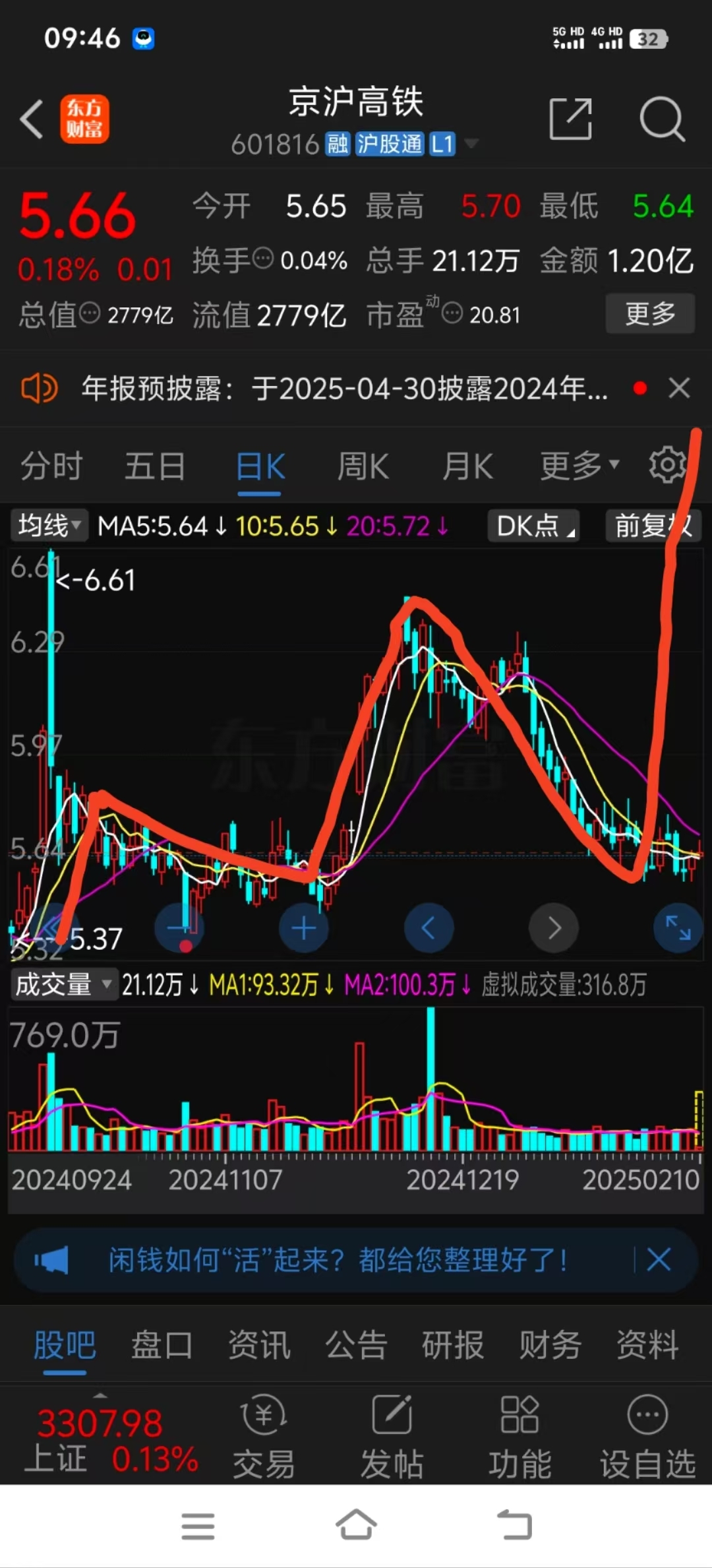 $京沪高铁(SH601816)$ 图形完美,童鞋门捏紧了!