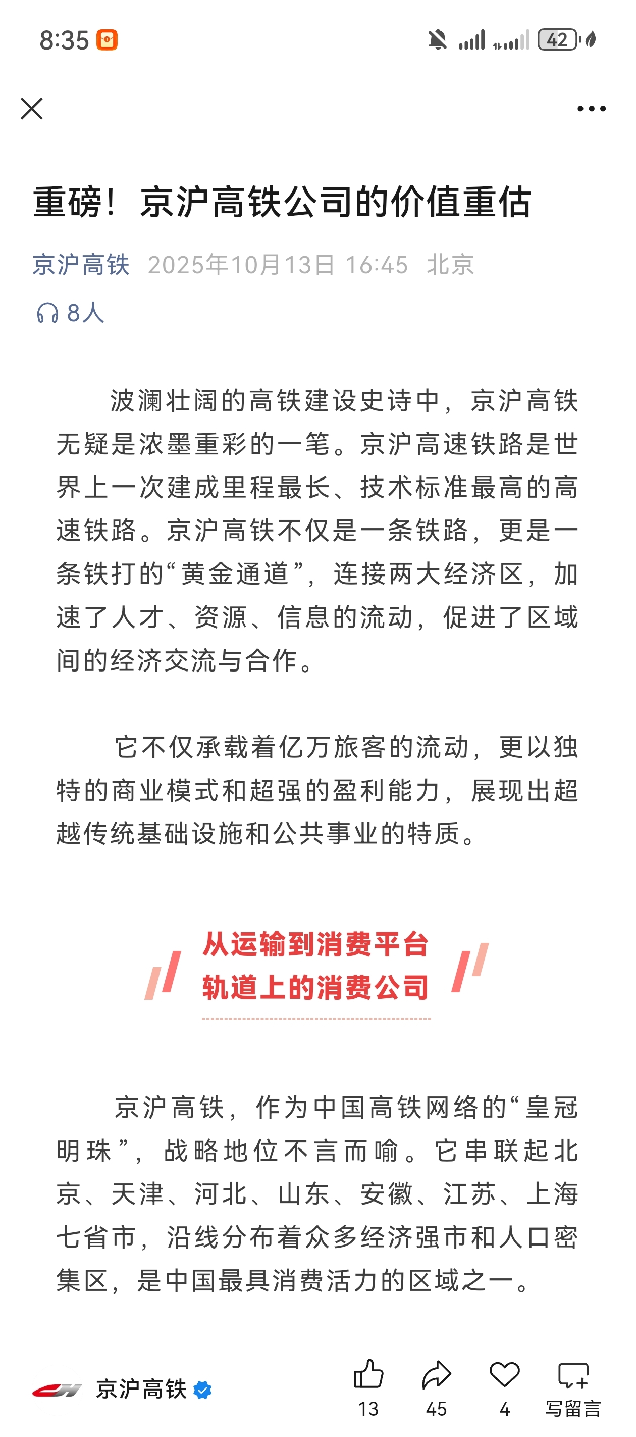 $京沪高铁(SH601816)$ 跌成这么熊样了