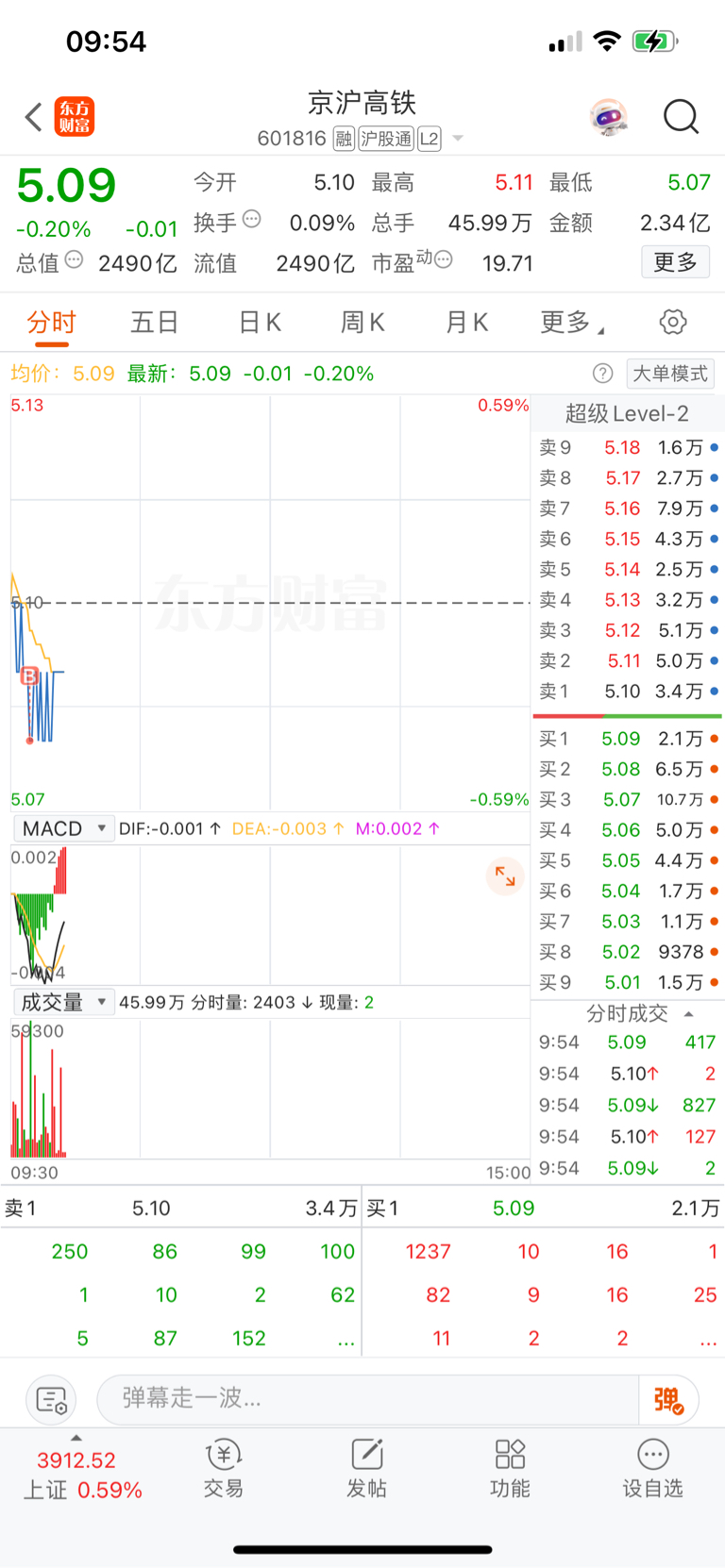 $京沪高铁(SH601816)$ 又掏了两分。想想可以了。