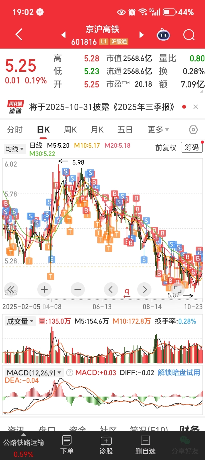 $京沪高铁(SH601816)$ 让你们见识一下我的操作图,被这铁套了一年了