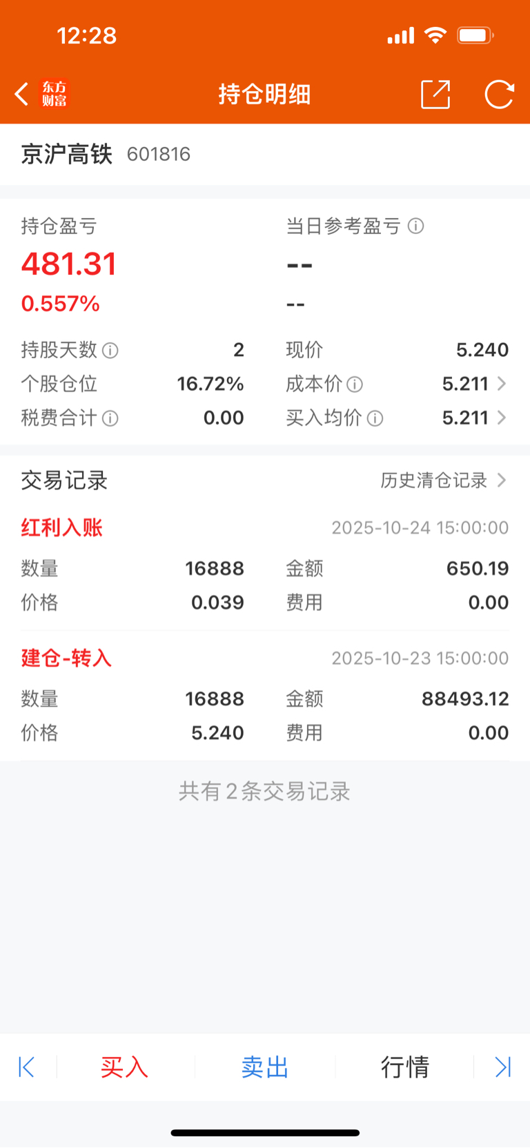 $京沪高铁(SH601816)$ 搞了几个月,手费扣不少,还剩下16888股,希望一路发发发。持有高铁的涨到16.88哈哈哈。大家都发发发!加油!