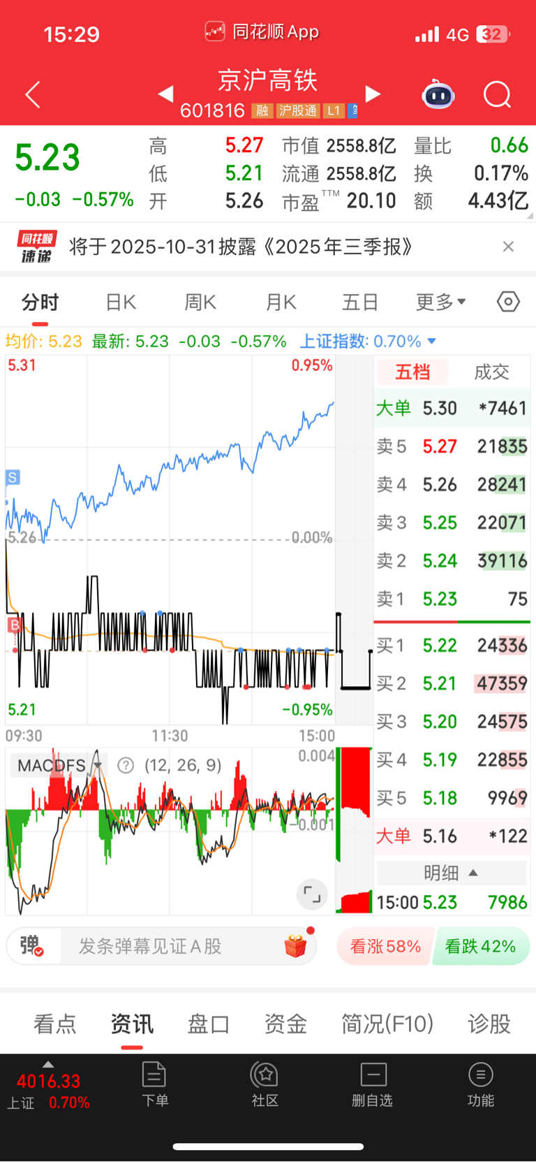 $京沪高铁(SH601816)$ 5.27成交的单子基本都是我的,感谢主力,剩余的单子做做小t,完美