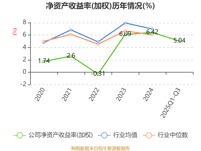 盈利能力方面, 2025年前三季度公司加权平均净资产收益率为5.04%,同比下降0.01个百分点。公司2025年前三季度投入资本回报率为4.01%,较上年同期上升0.09个百分点。