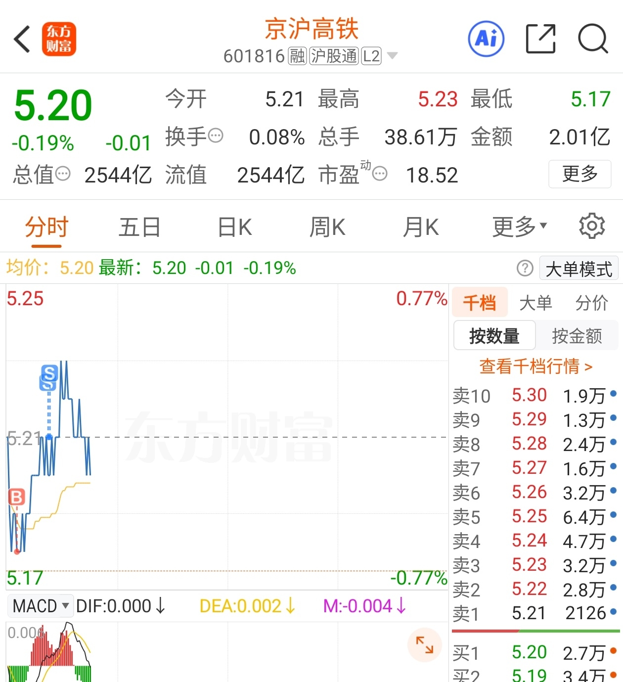 从交易时机来看,根据东方财富网的数据,2025年11月4日京沪高铁的收盘价为5.21元,11月3日的收盘价为5.25元,11月4日的最低价为5.19元。该投资者在5.18元买入,属于在当日相对低位买入,而在5.21元卖出,实现了一定的差价收益。