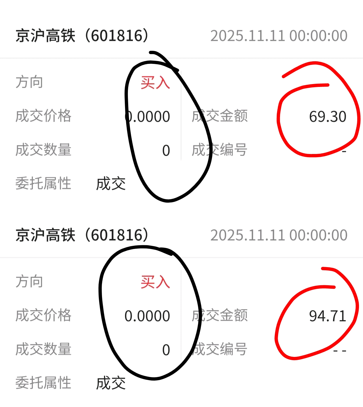 $京沪高铁(SH601816)$ 有知道这是什么情况?挂单没成交,怎么来的交易额,原来没留意
