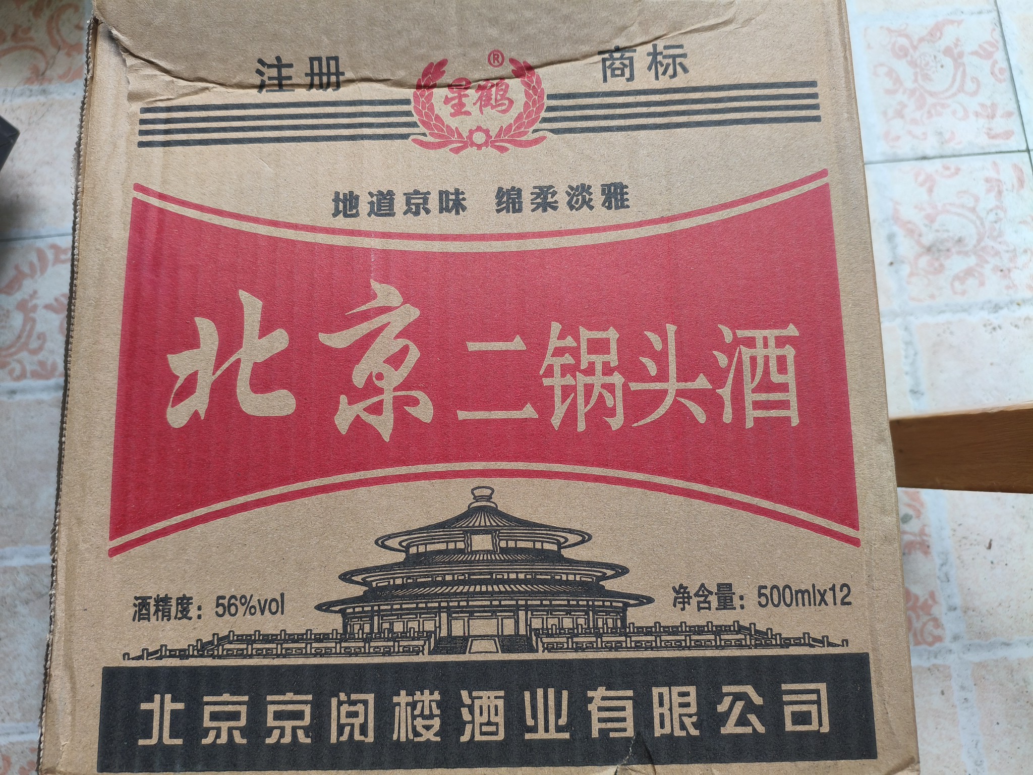 午饭后散步,在一家饭店门口讨了一个空纸箱,上面写着“北京二锅头酒”,看到有人消费