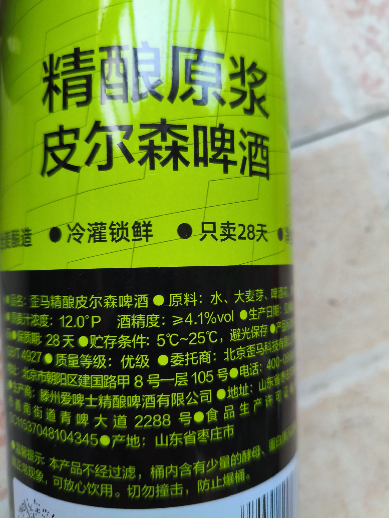 京沪高铁在山东省枣庄市的滕州市设有“滕州东站”,今天早上捡到一个滕州市生产的啤酒