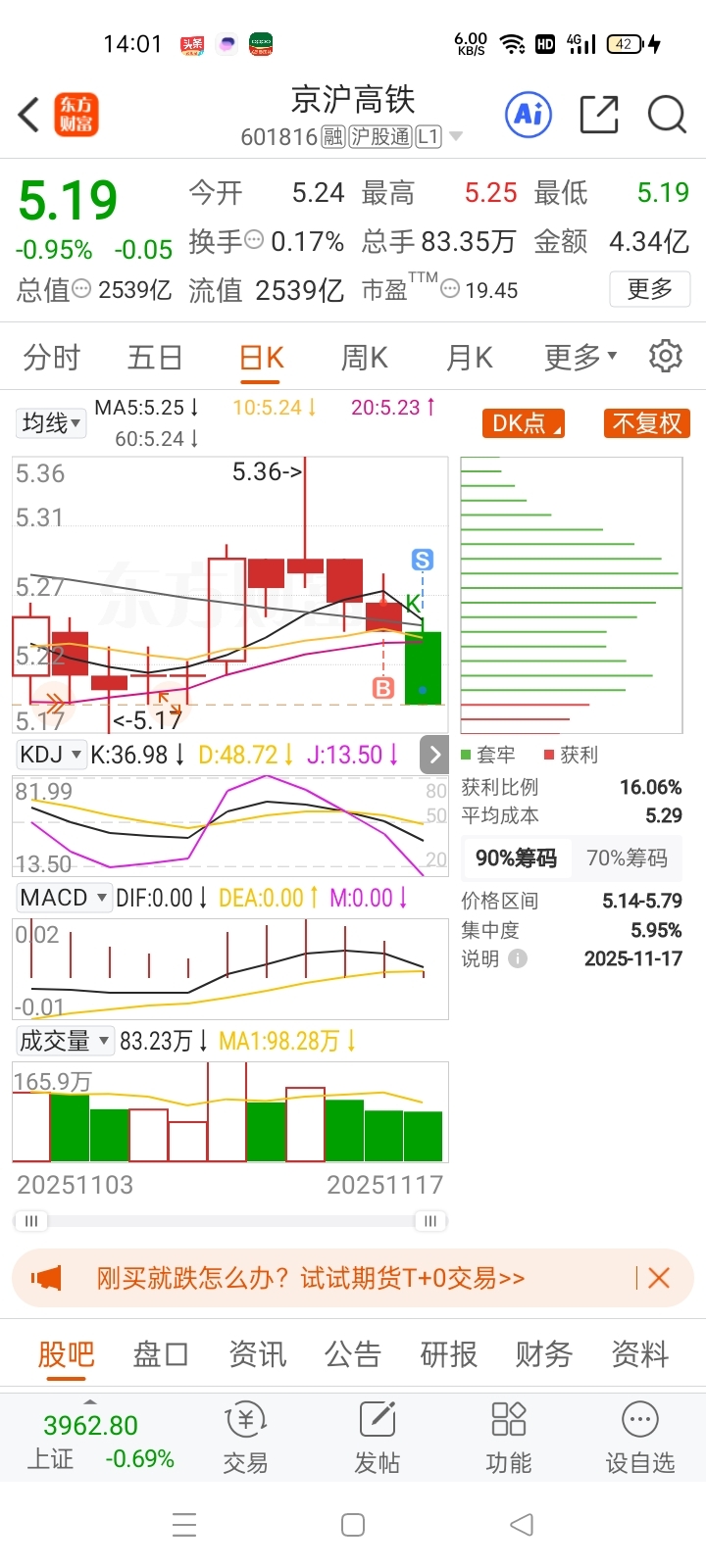 $京沪高铁(SH601816)$ 看空坚决走,等看多再回来板本