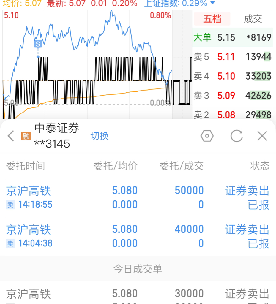 $京沪高铁(SH601816)$ 2点挂的都不给我成交,你有本事就让我卖飞