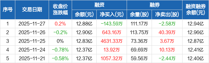 京沪高铁:融资净偿还143.59万元,融资余额12.88亿元(11-27)