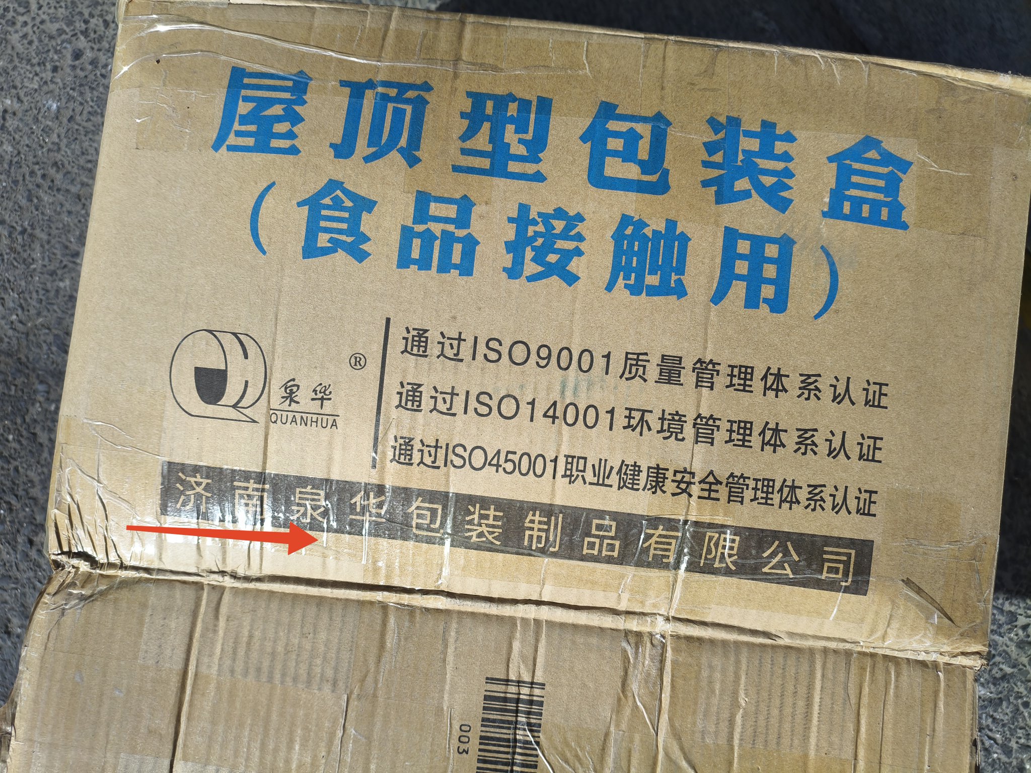 刚刚讨了一个山东济南产的食品包装盒的纸箱。京沪高铁在山东省济南市区设有“济南西站