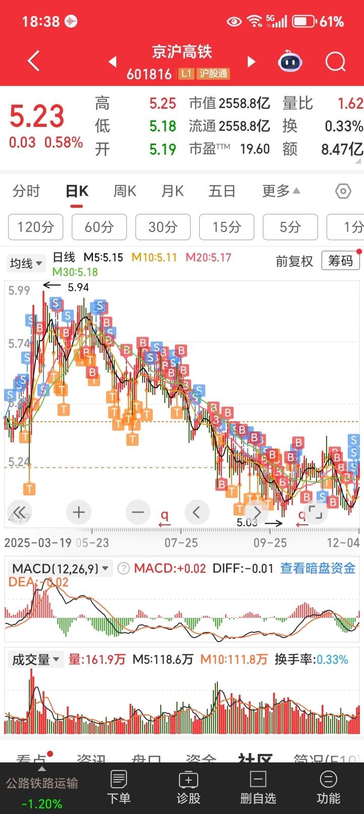 陆续出点,减少点仓位,躺的时间太长了,6块3毛多买的,,没想到高铁波动太小,做T