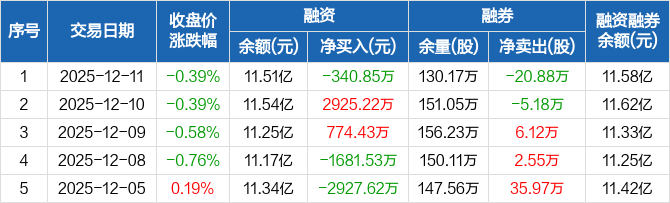 京沪高铁:融资净偿还340.85万元,融资余额11.51亿元(12-11)