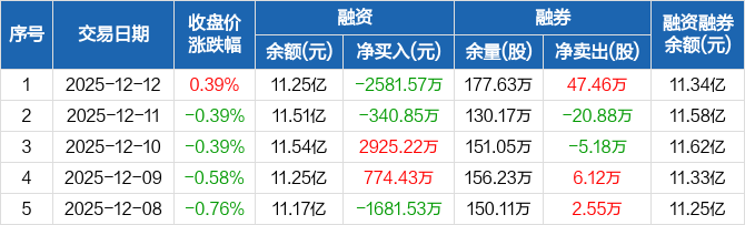 京沪高铁:融资净偿还2581.57万元,融资余额11.25亿元(12-12)