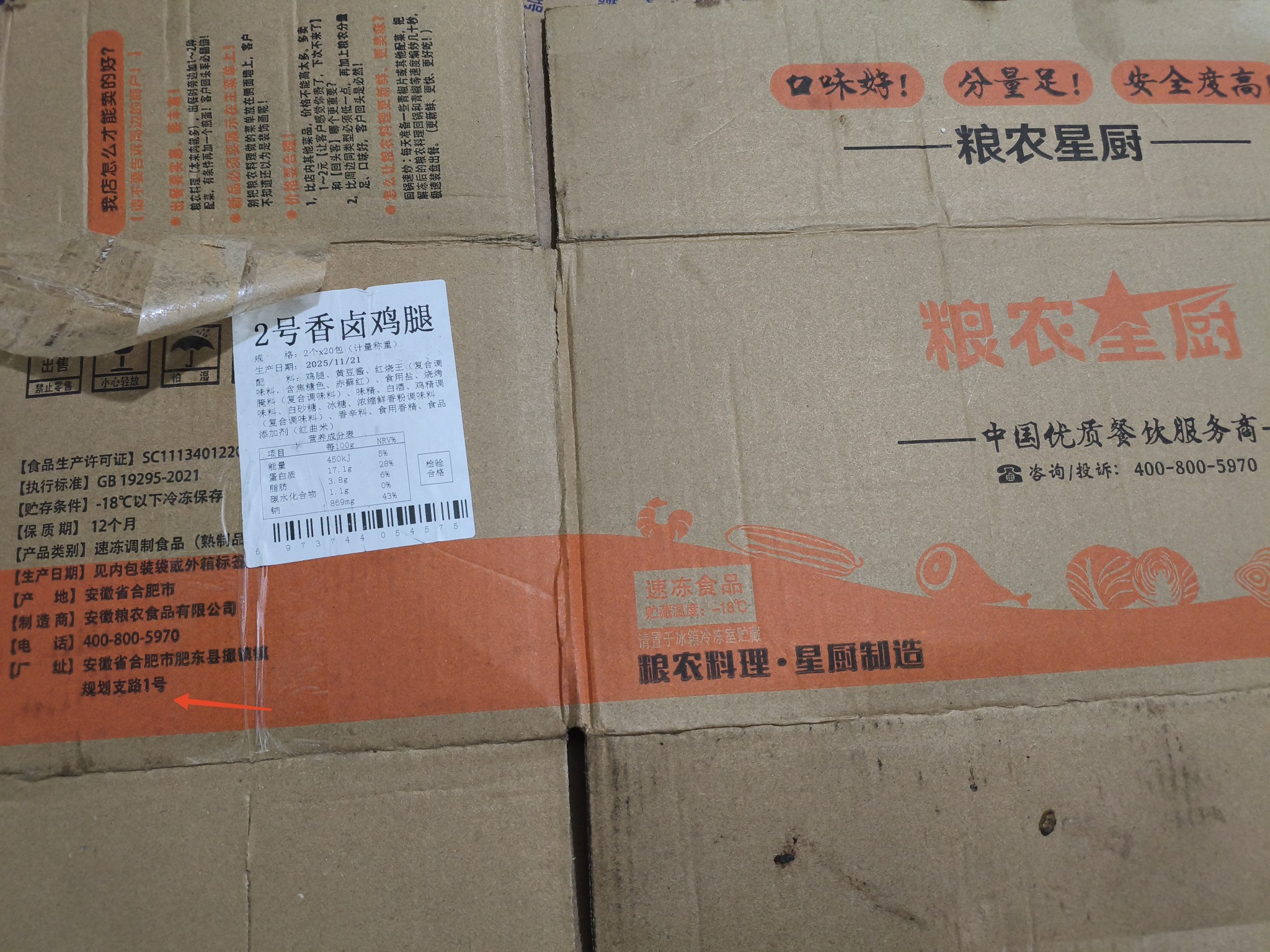今天在某餐饮店门口捡到丢弃的一个纸箱,上面显示生产商的地址在安徽省合肥市肥东县。