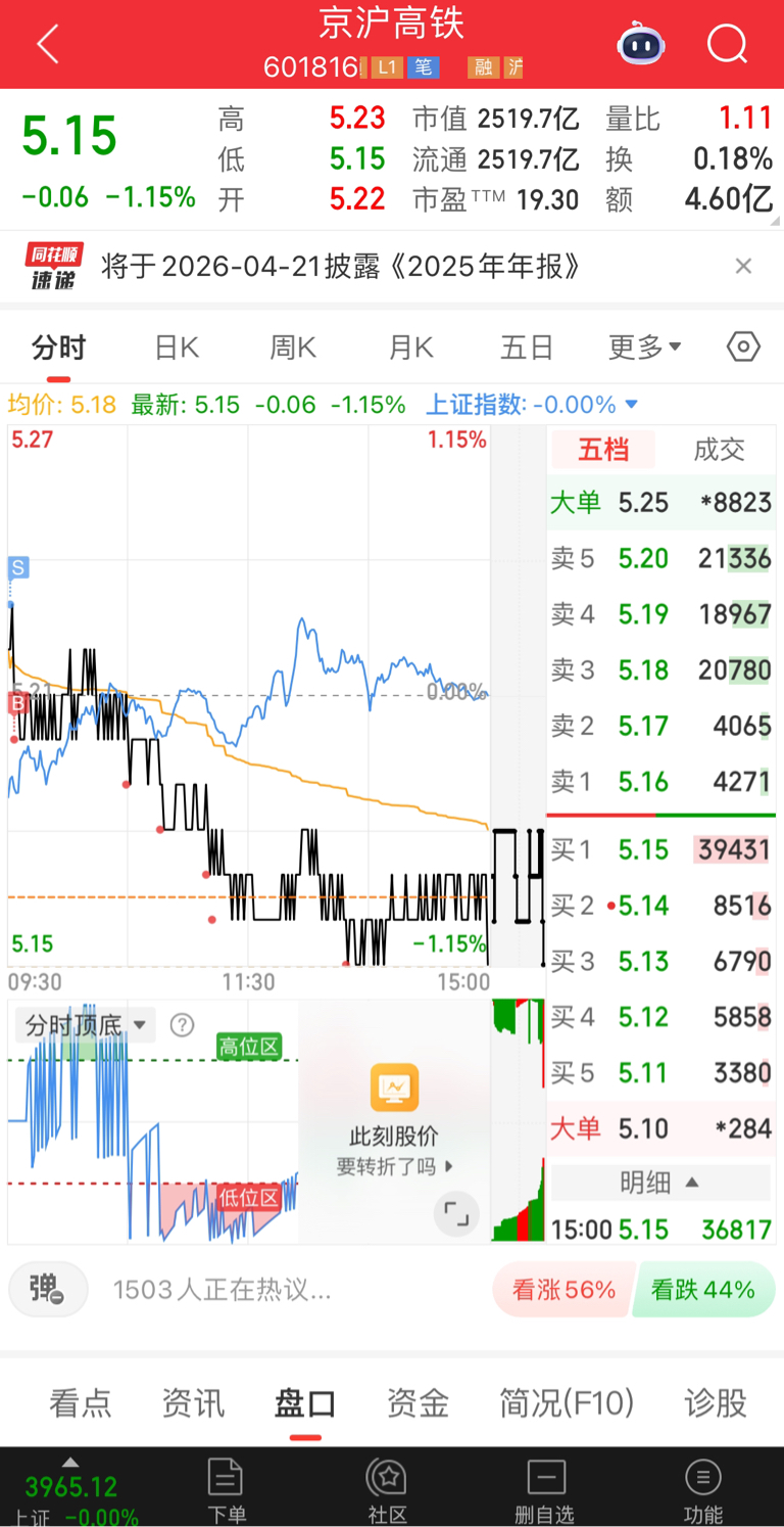 $京沪高铁(SH601816)$ 我还能买,有本事你继续跌,我为祖国扛大旗
