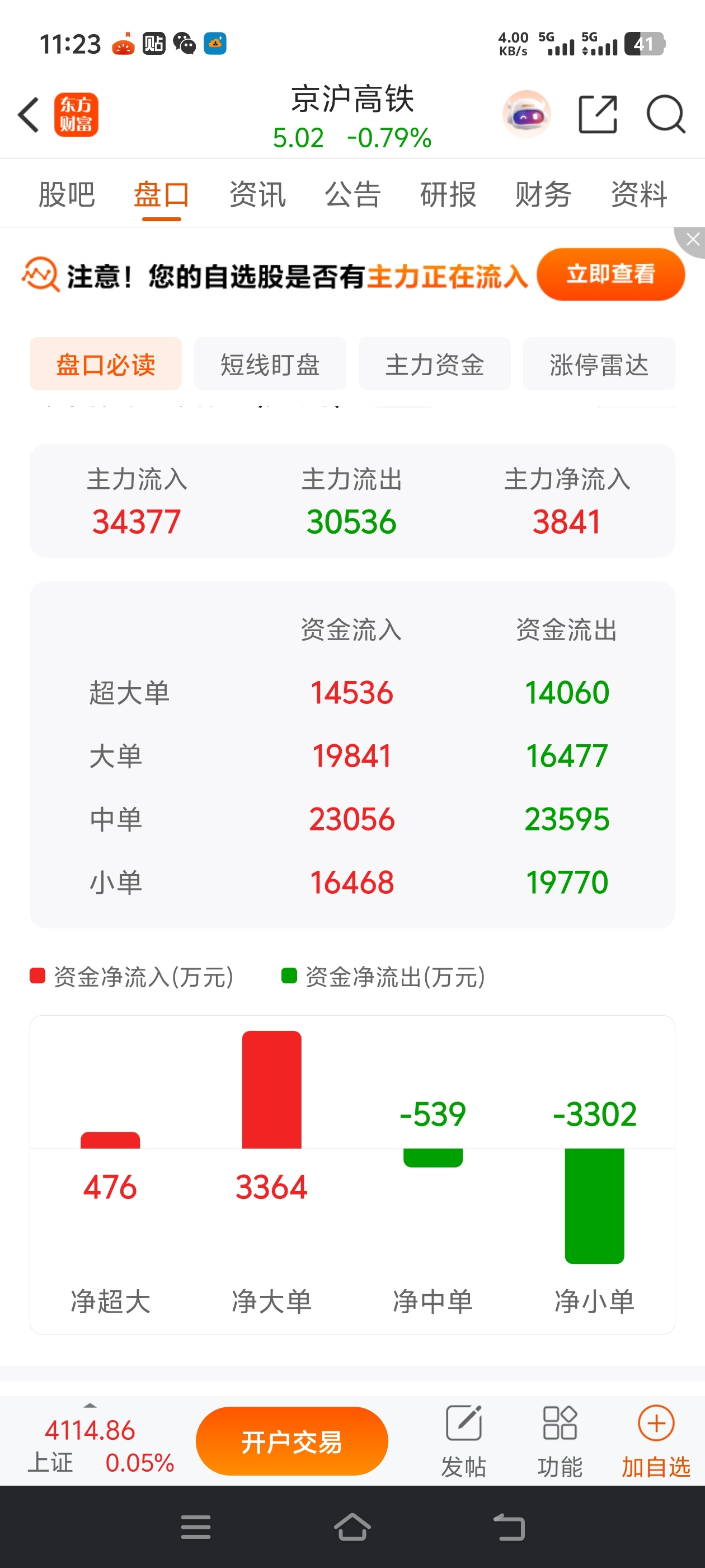$京沪高铁(SH601816)$ 小散砸盘真厉害,主力流入3000万都跌成这样
