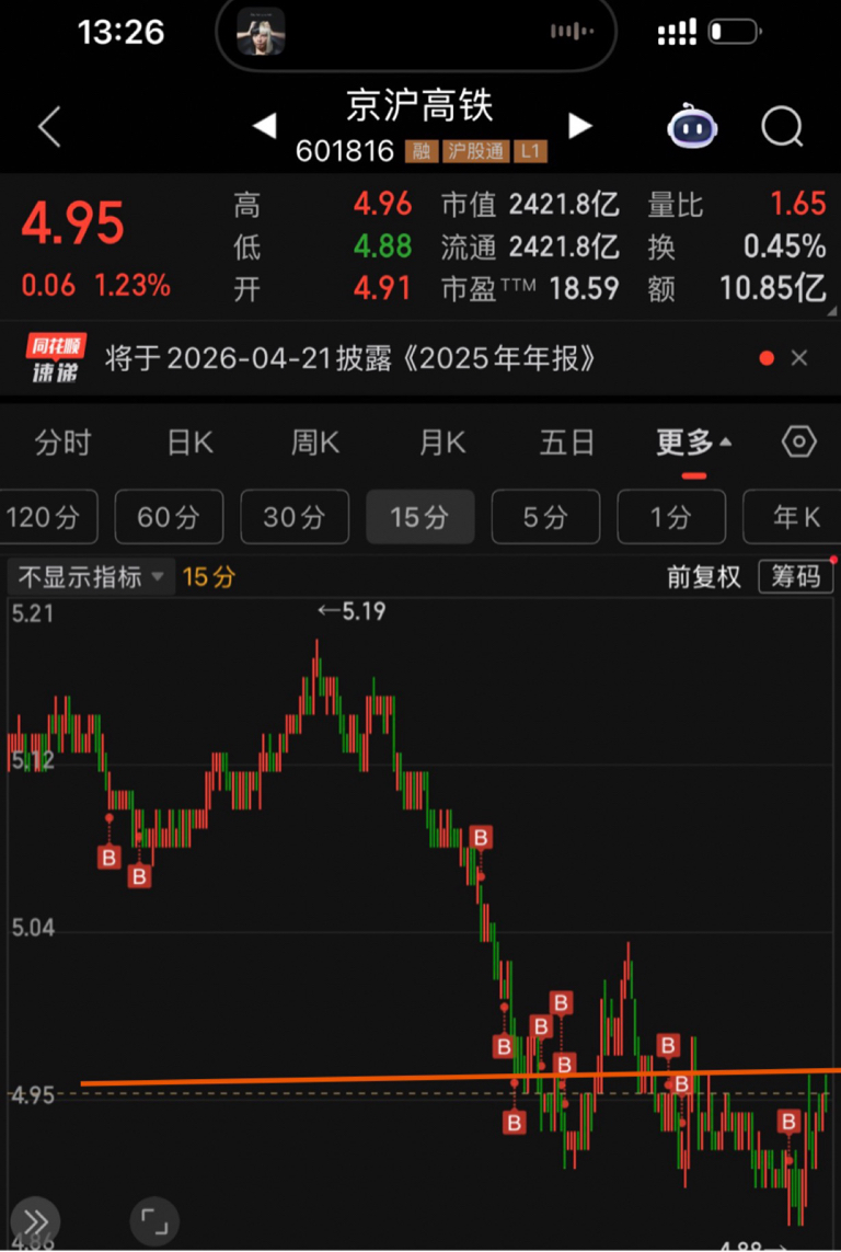 $京沪高铁(SH601816)$ 可以选择做t,只是不想。abcdef,ef份额是盈利的。懒的t了。