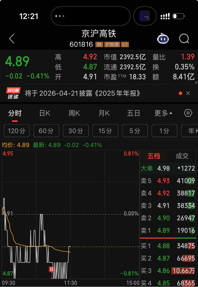$京沪高铁(SH601816)$