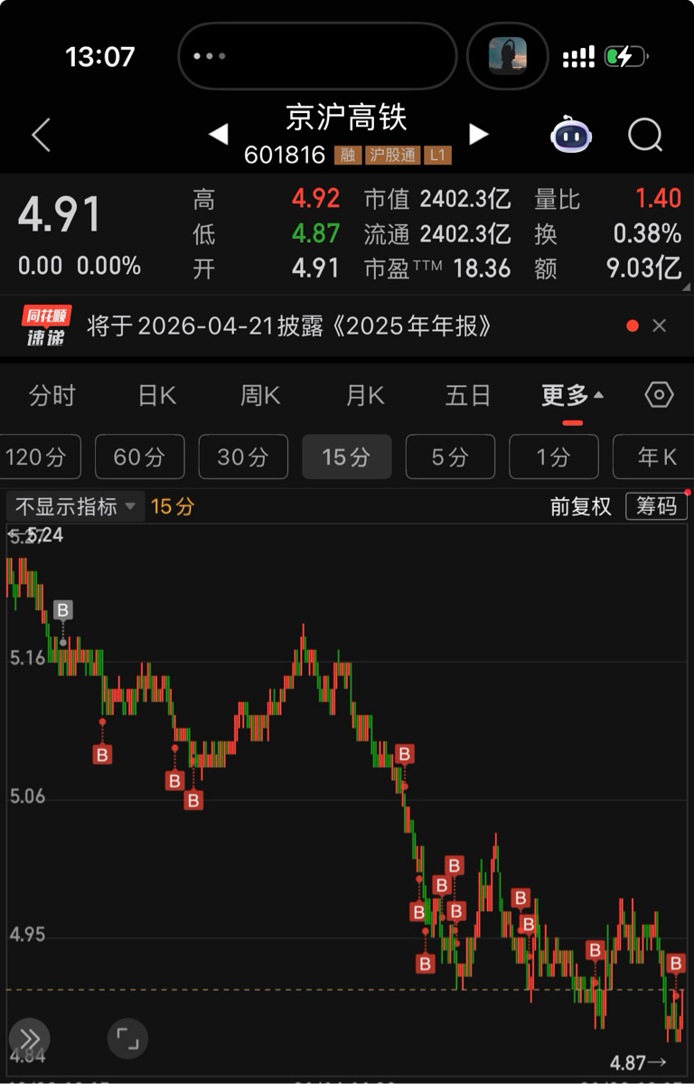 $京沪高铁(SH601816)$ 这是割15分钟级别的买点。