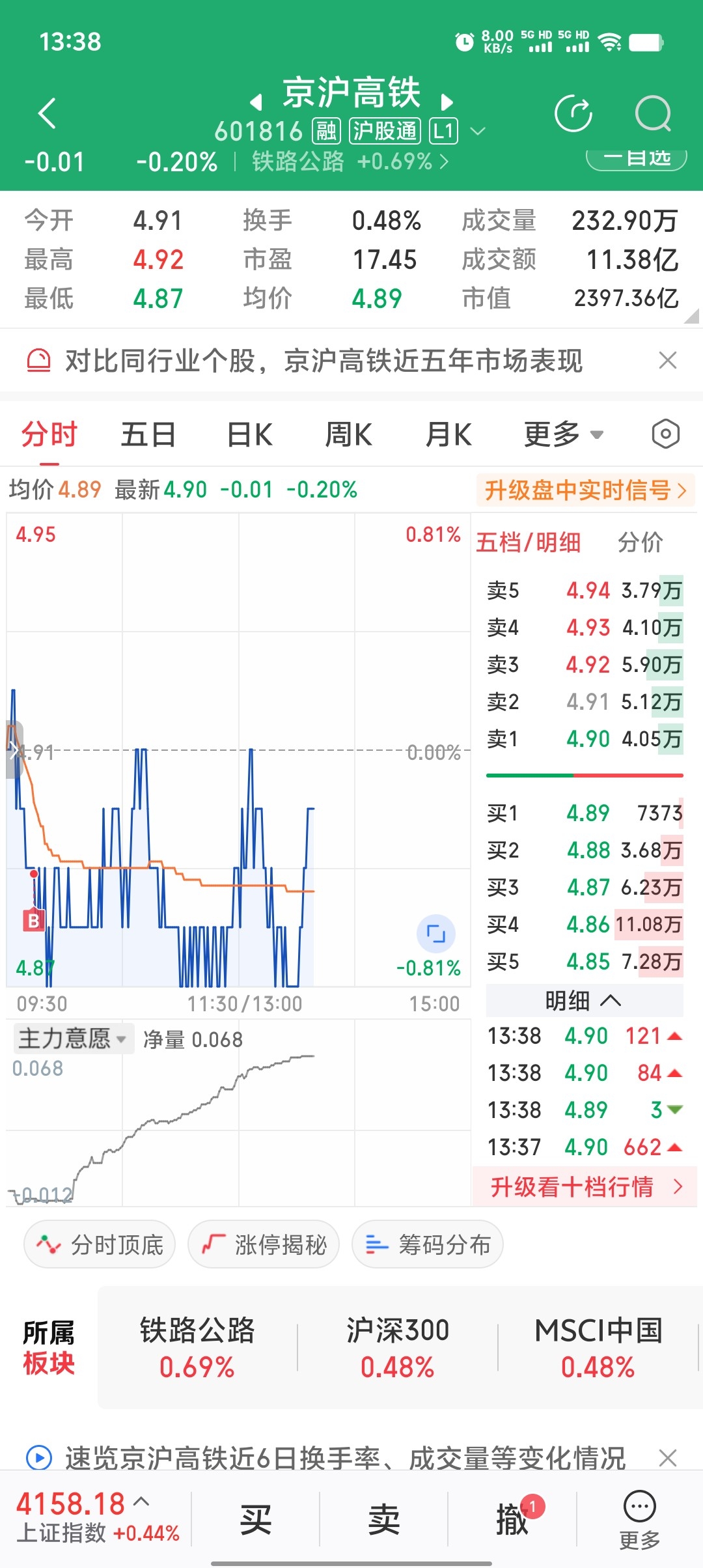 $京沪高铁(SH601816)$ 先建个底仓在说,希望慢慢在往下走点。
